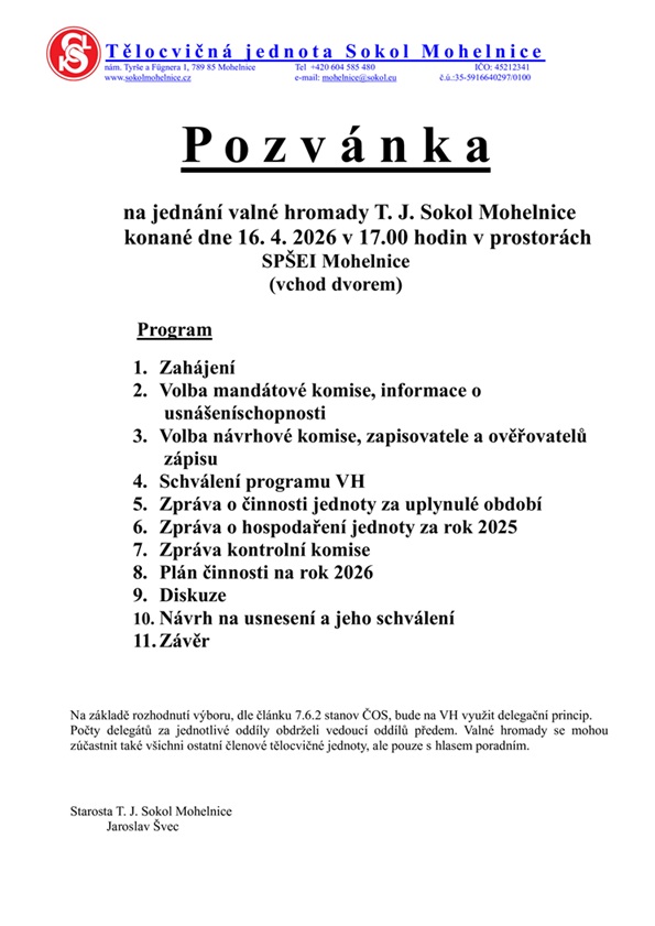 Pozvánka na VH Sokol 16.4.2026